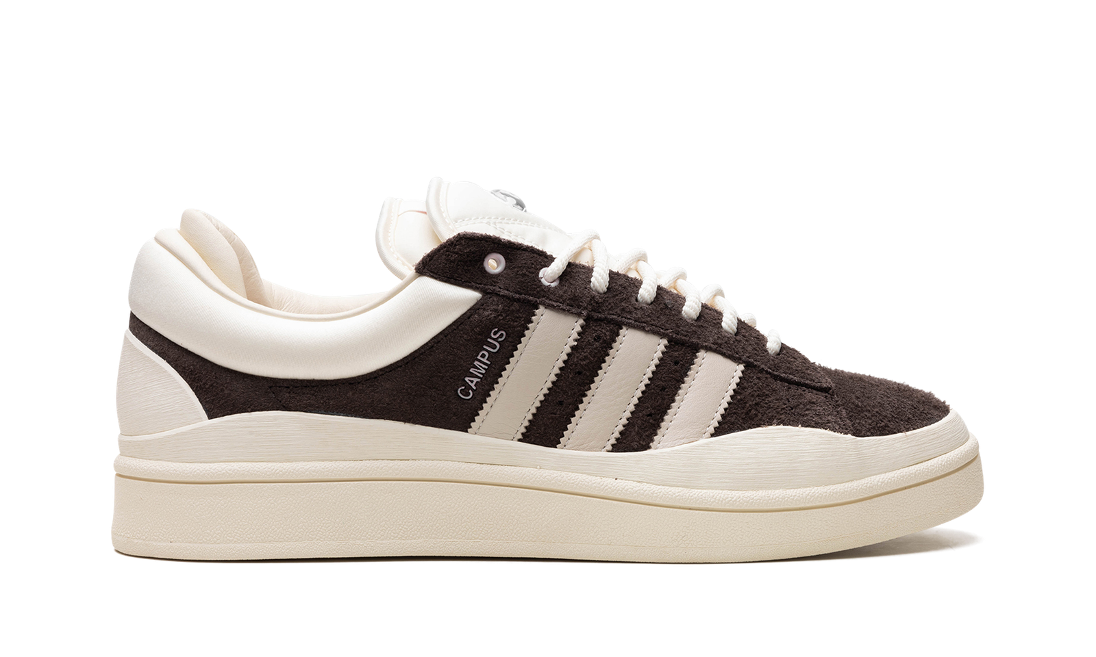 The Bad Bunny x adidas Campus “The Last Campus” is yet another popular collaboration between the famed recording artist and adidas. Also known as the “Deep Brown,” the “Last Campus” adidas Campus by Bad Bunny features a Deep Brown hairy suede upper accented with tan leather Three Stripes branding on the sides. A “Campus” logo can be seen on the lateral side of the mid-panel. The shoe’s heavily padded collar is a signature design trait of Bad Bunny’s collaborations with adidas. As is the “el ojo” logo on the top layered tongue. A cream wavy rubber mudguard and rubber midsole complete the look. Release date: May 11, 2024