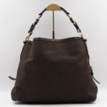 A Prada Canapa Hobo bag in brown canvas. Made in brown canvas and leather with gold-tone hardware. Convenient every day bag, nice size to carry your daily items. Single handle on large rings for comfortable shoulder carrying. Inside is a zipper pocket, the middle has a button closure.