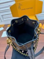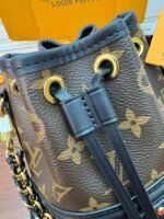 The CanoƩ bucket bag in Monogram canvas is a fusion of two iconic Louis Vuitton models: the historic NoƩ and the fashionable Cannes. With its small proportions, Cannes-inspired molded bottom, and NoƩ drawstring, it perfectly combines style with functionality. The braided chain and leather strap, both detachable, give carry options.