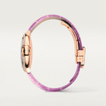 • Purple alligator leather strap with gold folding buckle