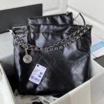 Chanel 22 AS3260 Small Bag Black and Silver Shiny Calfskin Silver Hardware