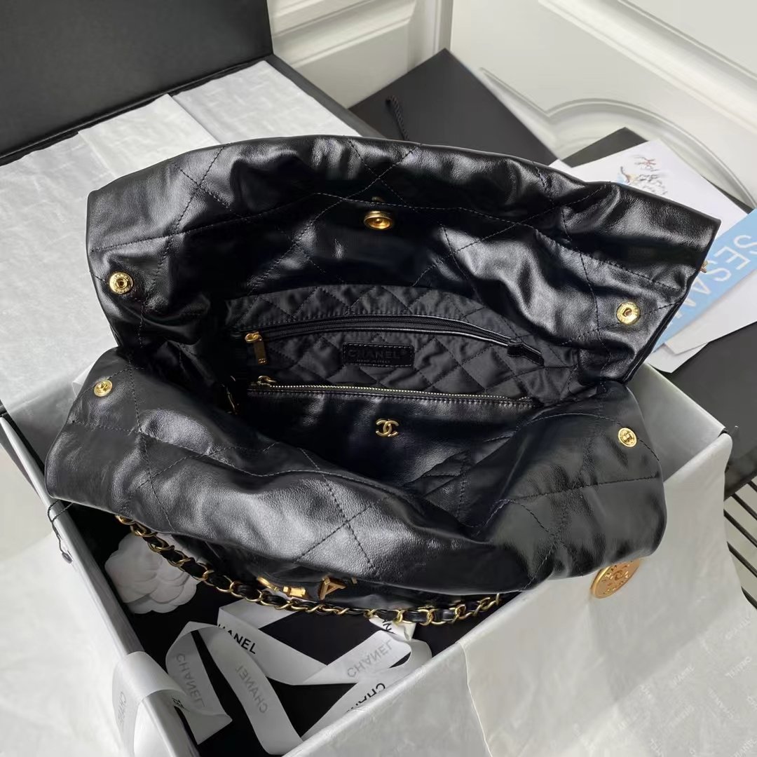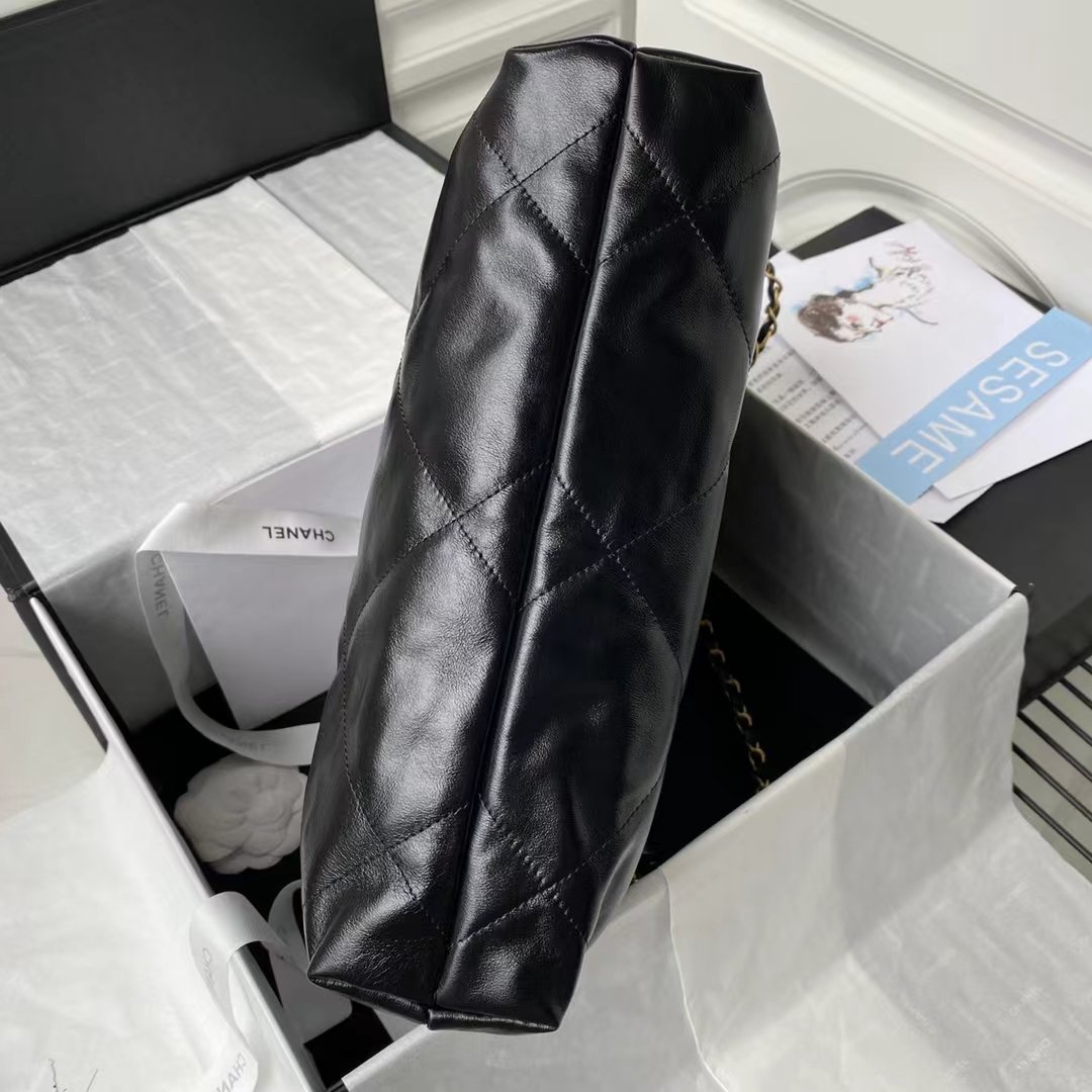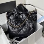 Chanel 22 AS3260 Small Bag Black Shiny Crumpled Calfskin Gold Hardware