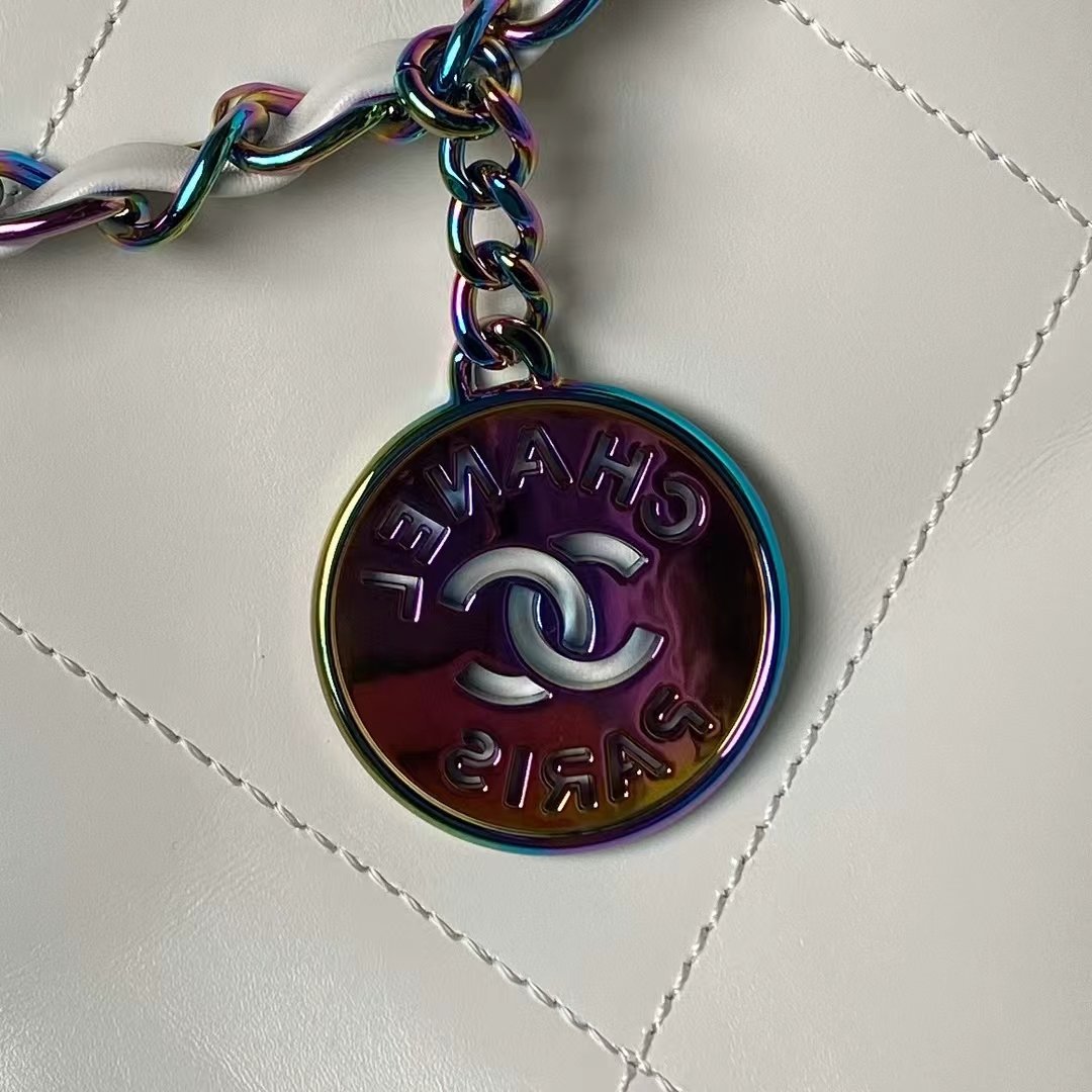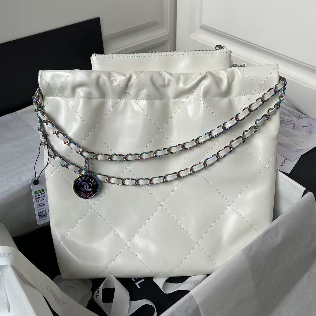 Chanel 22 AS3260 Small Bag White Calfskin Silver Gradient Hardware