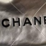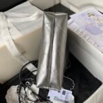 Chanel 22 AS3980 Mini Tote Shiny Calfskin & Silver Metal Silver Black