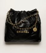 Chanel 22 Hobo Bag 24C AS4486 Gold Metallic Dark Pink Shiny Calfskin New Edition Horizontal