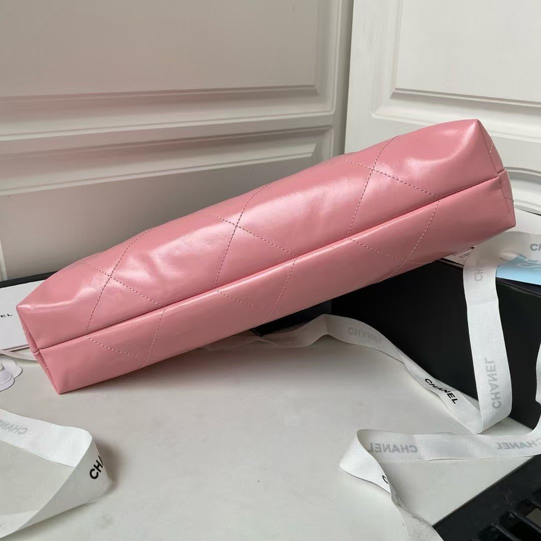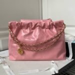 Chanel 22 Hobo Bag 24C AS4486 Gold Metallic Dark Pink Shiny Calfskin New Edition Horizontal