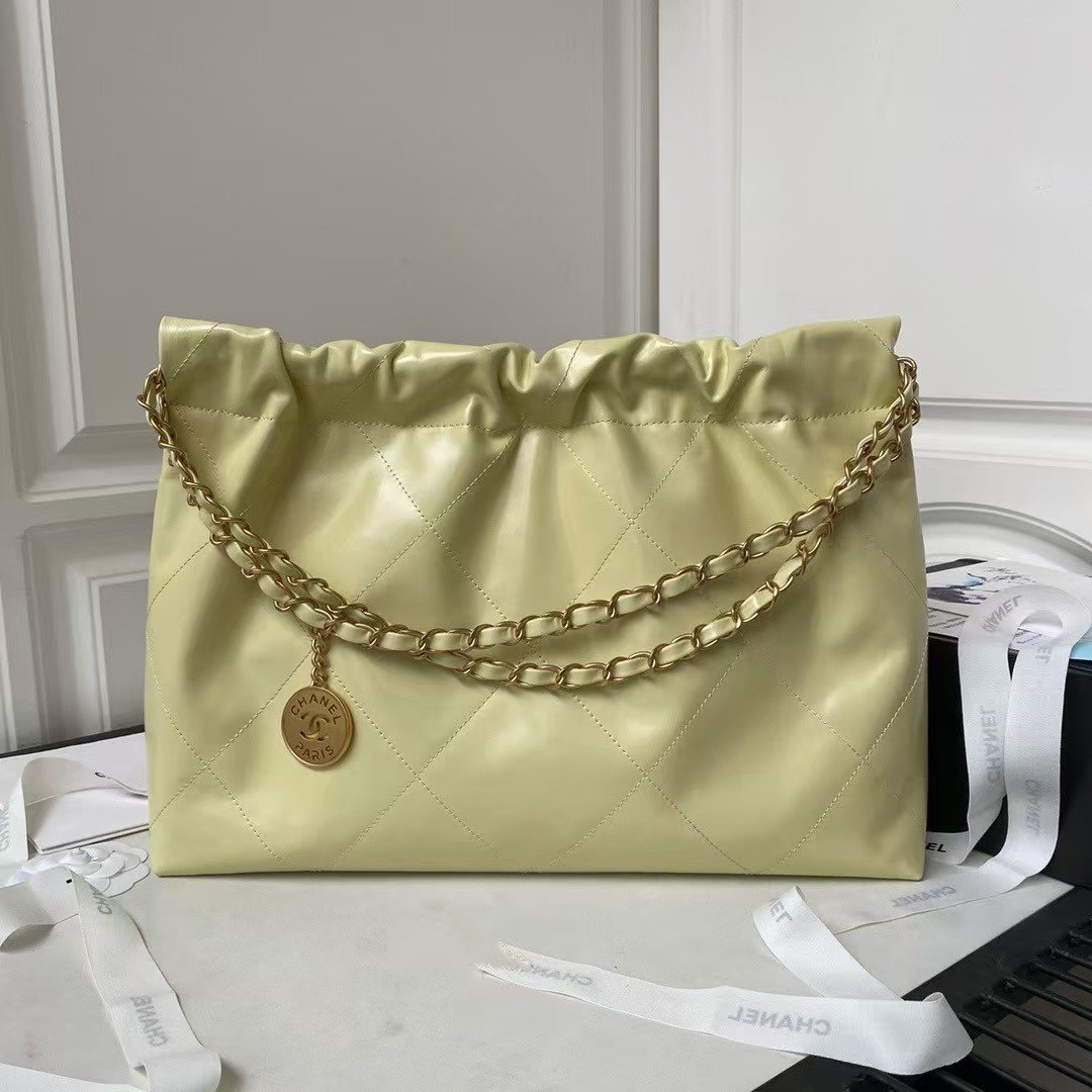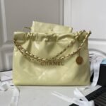 Chanel 22 Hobo Bag 24C AS4486 Gold Metallic Yellow Shiny Calfskin New Edition Horizontal