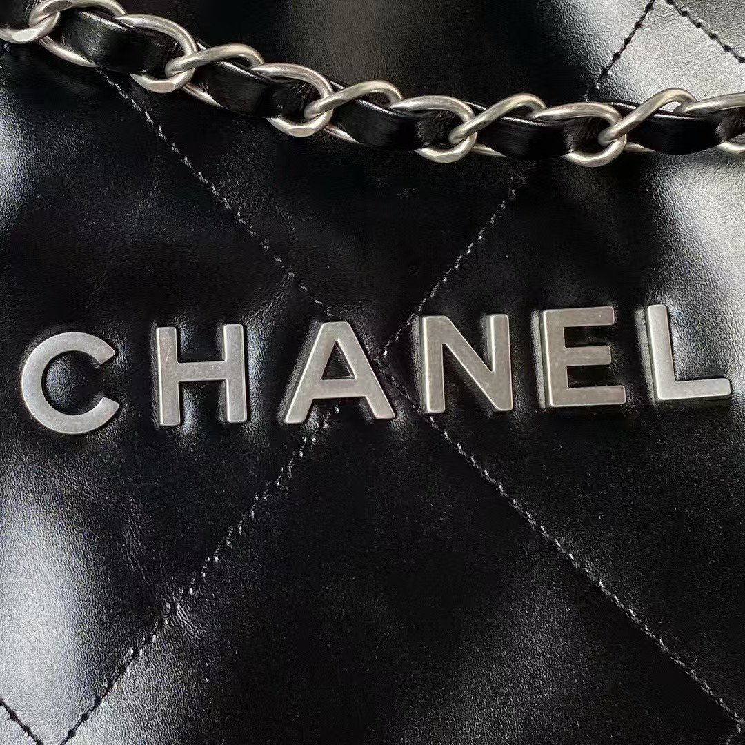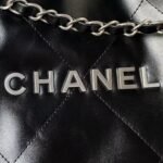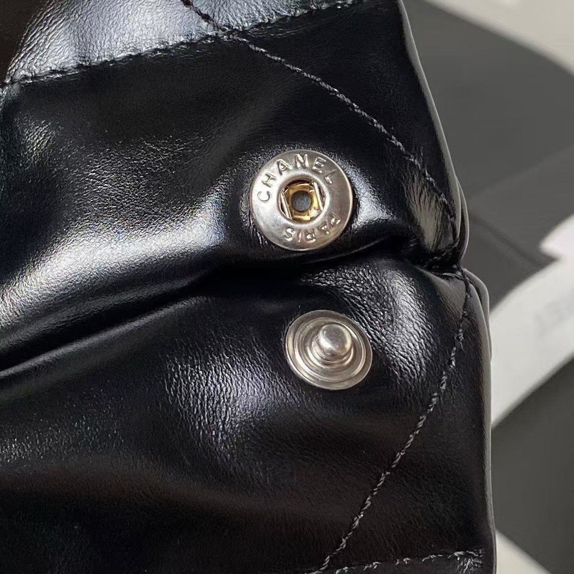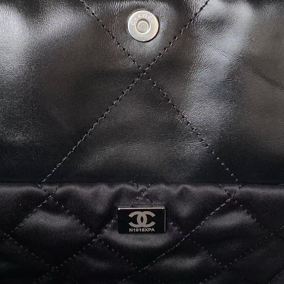 Chanel 22 Hobo Bag 24C AS4486 Silver Metallic Black Shiny Calfskin New Edition Horizontal