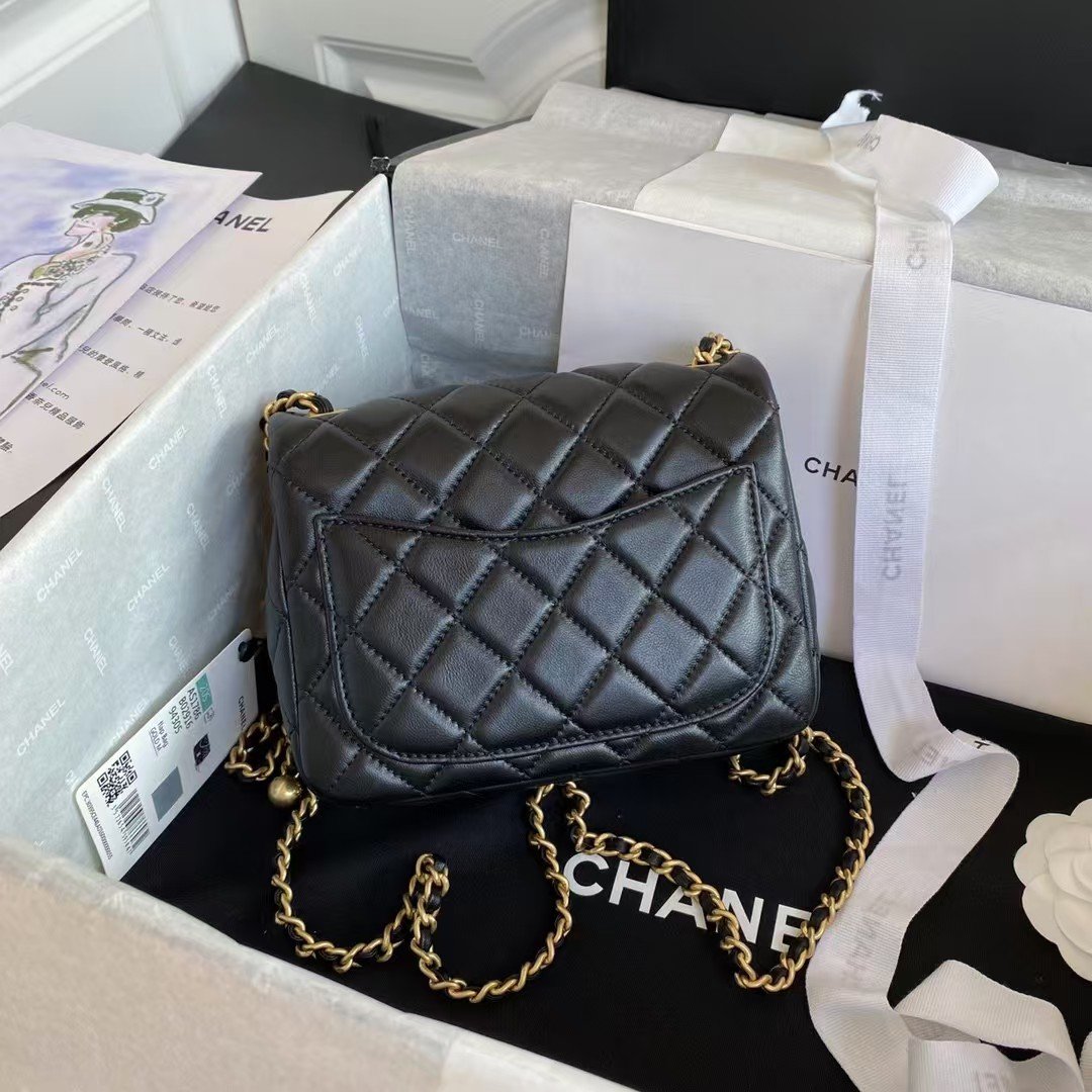 Chanel 23C AS1786 Mini Square Pearl Embossed Flap Bag Antique Gold Hardware Black