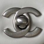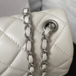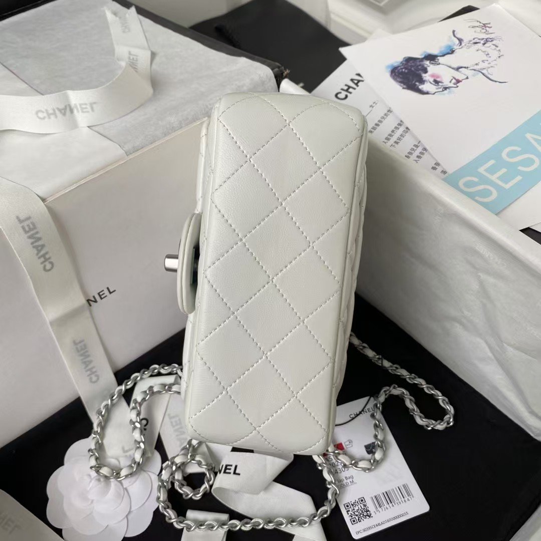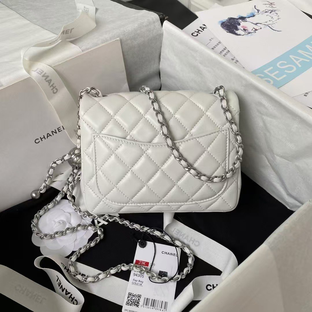 Chanel 23C AS1786 Mini Square Pearl Embossed Flap Bag Antique Silver Hardware White