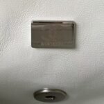 The interior is lined in white lambskin with a zippered pocket with Chanel zipper and an open pocket underneath.