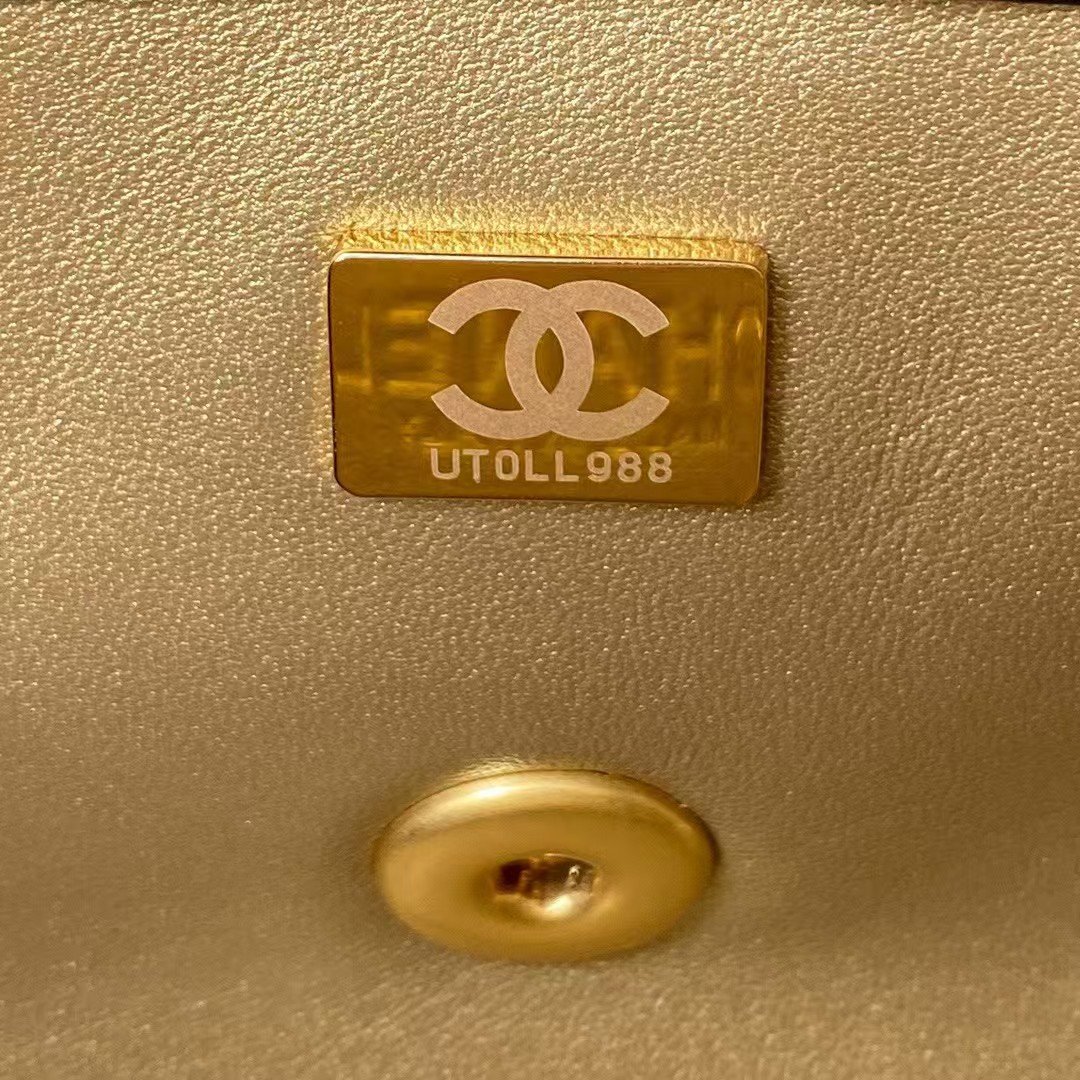 Chanel 23K AS1787 Mini Pearl Embossed Rectangular Flap Bag Lambskin Brushed Metal Hardware Apricot