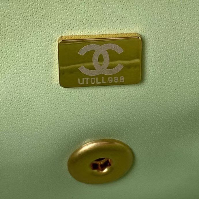 Chanel 23K AS1787 Mini Pearl Embossed Rectangular Flap Bag Lambskin Brushed Metal Hardware Light Green