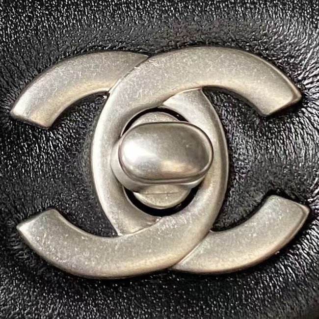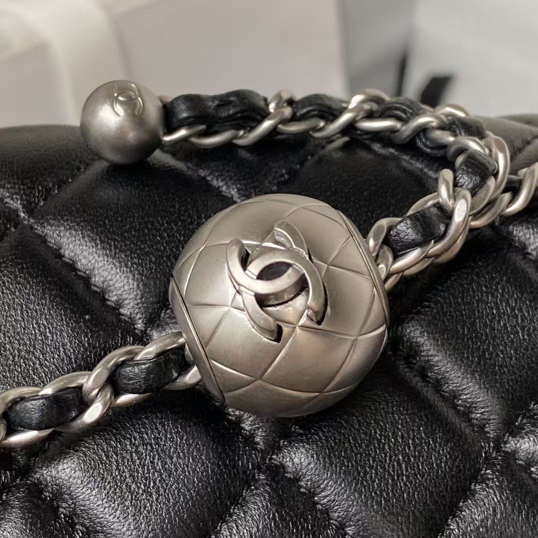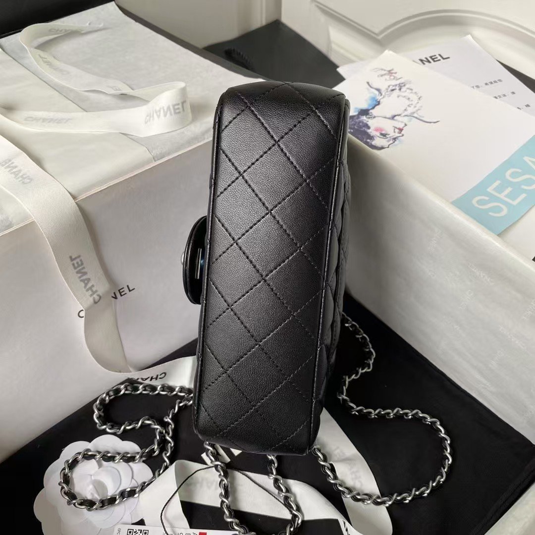 Chanel 23K AS1787 Mini Pearl Embossed Rectangular Flap Bag Lambskin Brushed Silver Metal Hardware Black