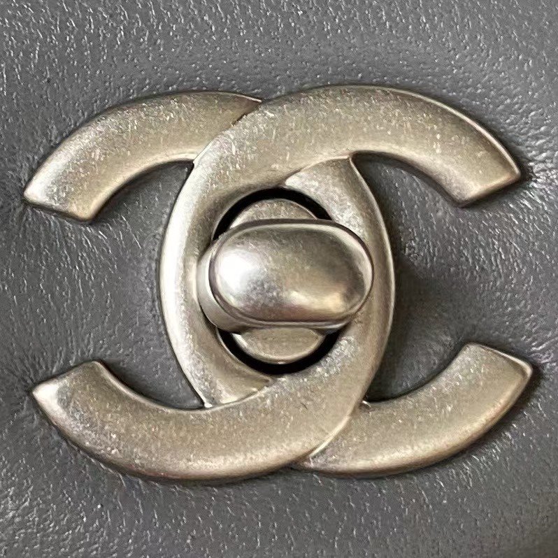 Chanel 23K AS1787 Mini Pearl Embossed Rectangular Flap Bag Lambskin Brushed Silver Metal Hardware Dark Grey