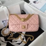 Chanel 23S AS4041 Mini Camellia Embossed Rectangular Flap Bag Antique Gold Metal Hardware Light Pink