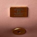 The interior is lined inRose Clair leather and features a small zip pocket with Chanel pull and slip pocket underneath on the rear wall.