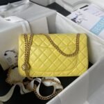 Chanel 23S AS4064 Camellia Embossed Chain Lambskin Flap Bag Yellow