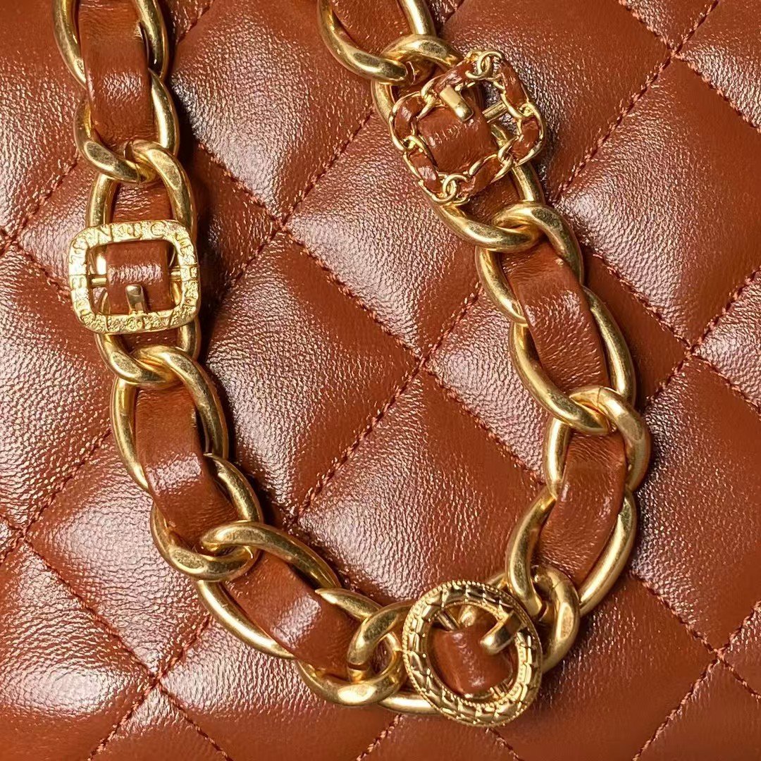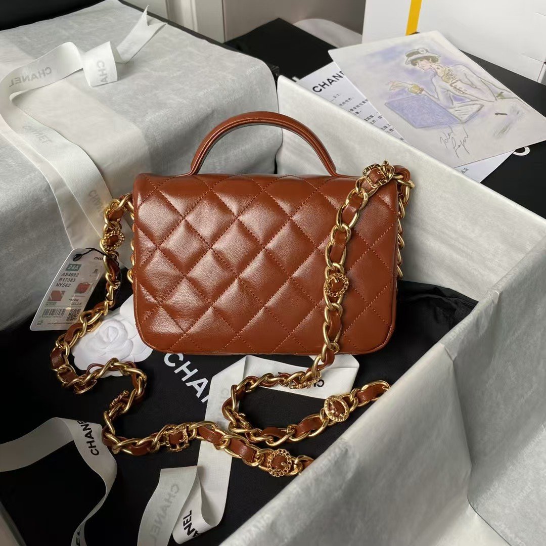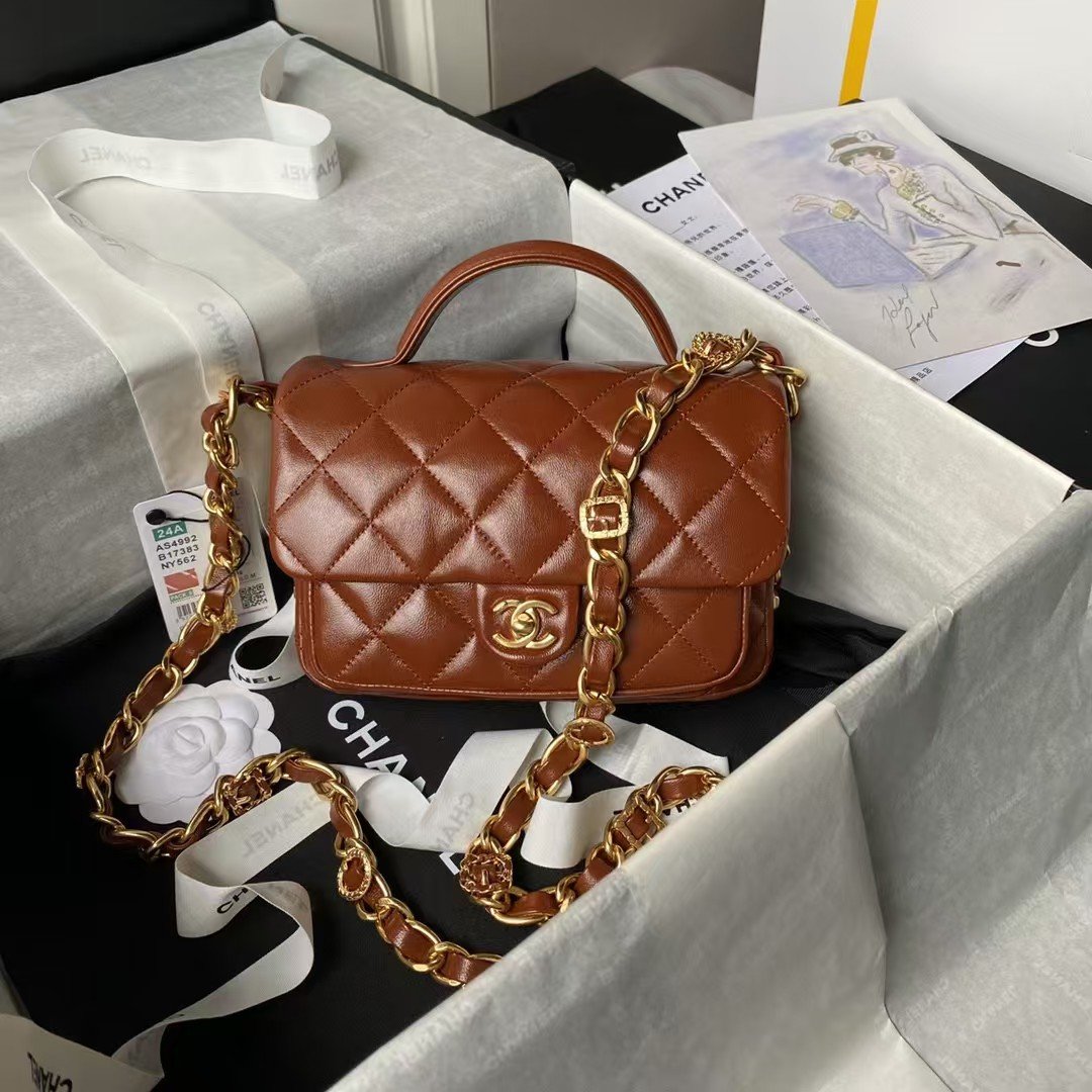 Chanel 24A AS4992 Mini Shiny Lambskin Flap Bag with Top Handle Brown