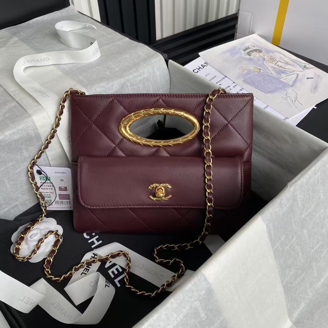 Chanel 24B AS5038 Lambskin Clutch Burgundy