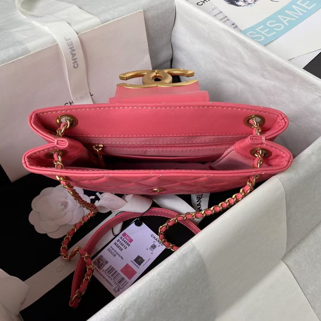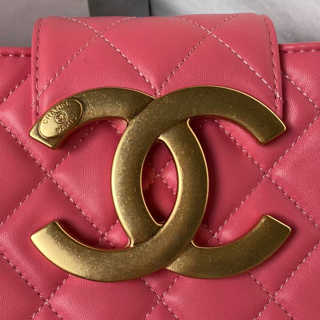 Chanel 24C AS4596 Vintage Logo Quilted Lambskin Shoulder Bag Fuchsia