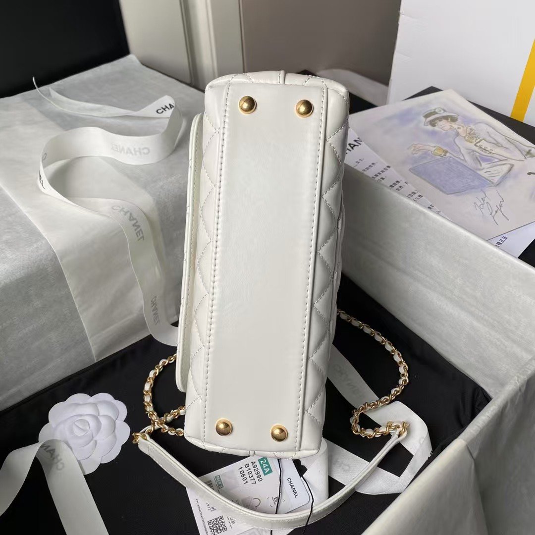Chanel A92990 Small Flap Bag With Top Handle White Shiny Calfskin White