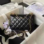 Chanel AS2649 Chain Bag With Gold Charm Small Vintage Calfskin Bag Black
