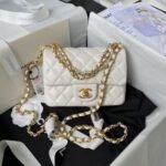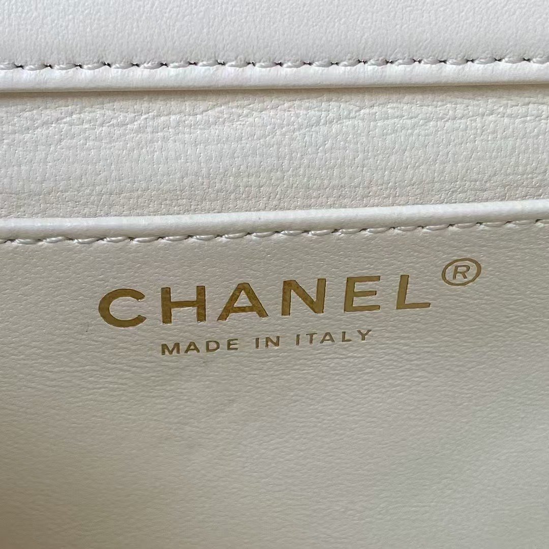 Chanel AS4385 Mini Flap Bag Pearl Lambskin Faux Pearl & Gold Metal White
