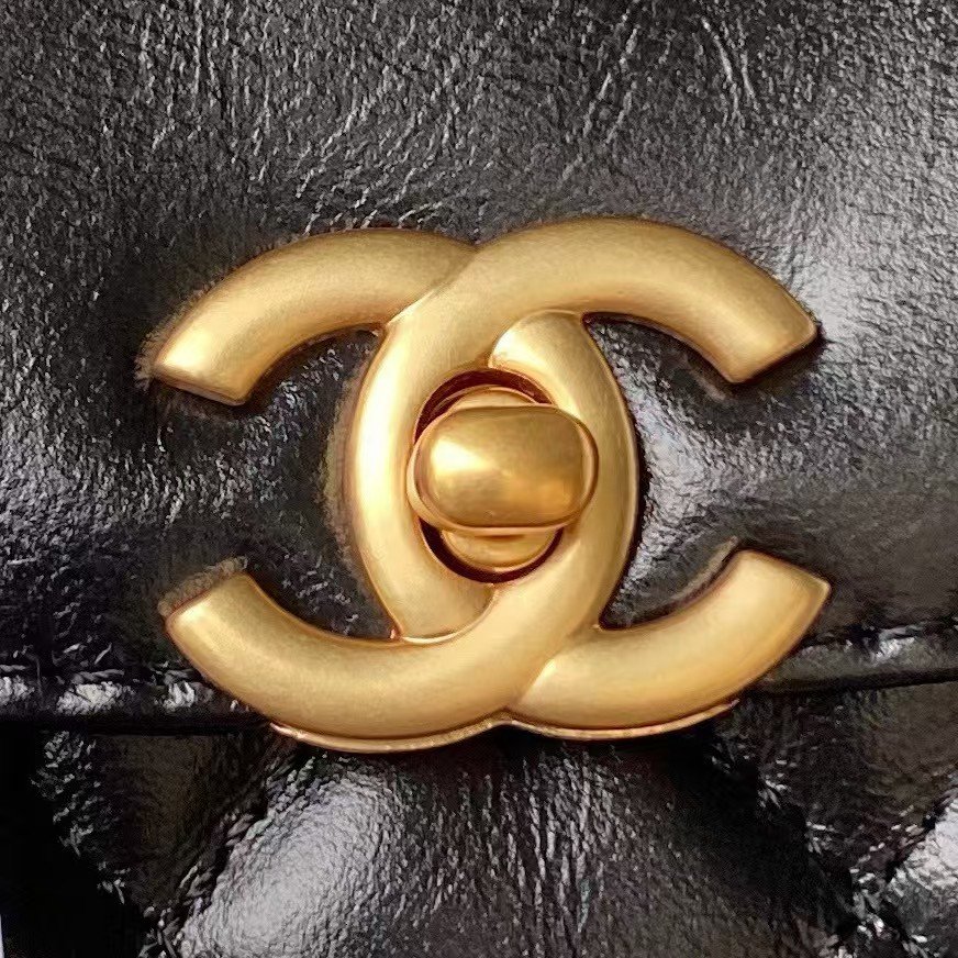 Chanel AS4416 Mini Shopping Bag Shiny Aged Calfskin Gold Tone Metal Black