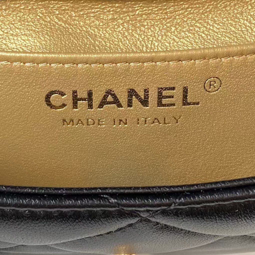 Chanel AS4967 Small Flap Bag Shiny Lambskin Enamel & Gold Metal Black
