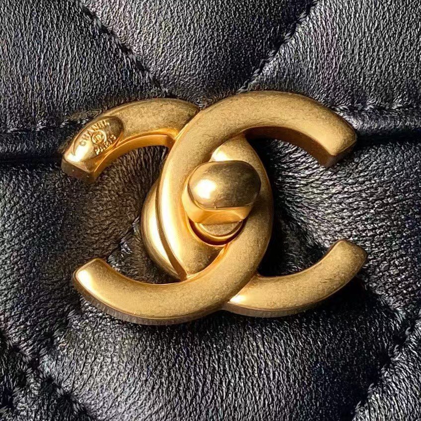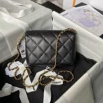 Chanel AS4973 Mini Flap Bag Shiny Lambskin Enamel & Gold Metal Black