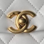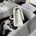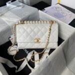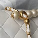 Chanel AS4997 Flap Bag Top Handle Shiny Lambskin Imitation Pearl & Gold Metal White