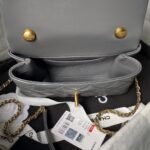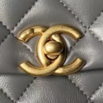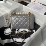 Chanel AS5001 Mini Flap Bag Top Handle Shiny Lambskin Imitation Pearl & Gold Metallic Grey