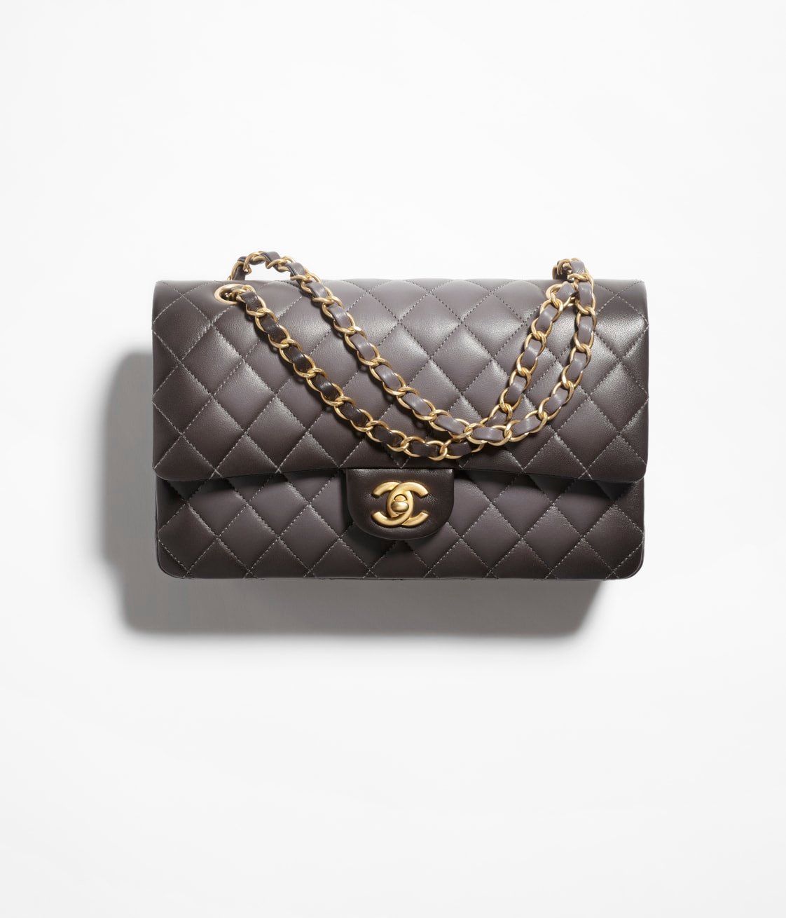 This flap bag is made of ombre lambskin with light gold hardware, front flap with CC turnlock closure, half-moon back pocket, interwoven light gold chain and ombre leather crossbody strap.