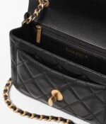 Introducing the CHANEL Mini Flap Bag in Shiny Lambskin – a chic and sophisticated take on a timeless classic. Adorned with a stunning quilted exterior and finished with the iconic CC turnlock, this exquisite bag will add a touch of luxury to any outfit. With a black quilted lambskin exterior, it also features a chain and leather interwoven sliding shoulder strap, making it an easy transition from day to night. The top flap closes with a CC turnlock and features two slip pockets for easy organization. With a front flap pocket adorned with a CC turnlock closure, this bag is both practical and stylish.