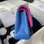 This classic small double flap bag is crafted in blue lambskin with ombre metal hardware, front flap with signature CC turnlock closure, half-moon back pocket, adjustable interwoven ombre chain and blue leather shoulder strap.