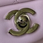 This small Classic Double Flap Bag is crafted in light purple lambskin with silver hardware, front flap with signature CC turnlock closure, half-moon back pocket, adjustable silver interwoven chain link and light purple leather shoulder strap.