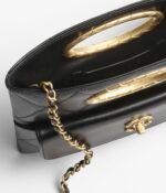 This Chanel 24B autumn and winter series high-end evening bag is made of black lambskin, which is soft and smooth, with gold metal accessories and a metal handle printed with the Chanel LOGO, which is very suitable for various occasions.