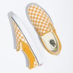 Vans The Checkerboard Classic Slip-On features sturdy low profile slip-on canvas uppers made with the iconic Vans checkerboard print, padded collars, elastic side accents, and signature rubber waffle outsoles. – https://www.vans.com/shop/checkerboard-slip-on-estate-blue-true-white