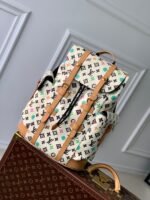 The fruit of the House’s collaboration with Tyler, this Christopher MM backpack is made from Monogram Craggy canvas, with the Monogram reimagined as a hand-drawn pattern that includes terrier dogs and daisy flowers. In addition to a spacious interior with numerous pockets, there are two outside pockets for quick access to essentials.
