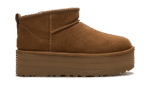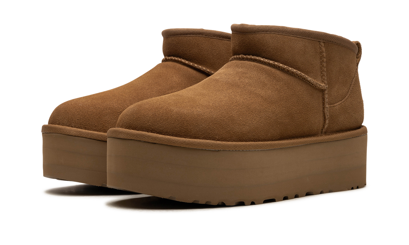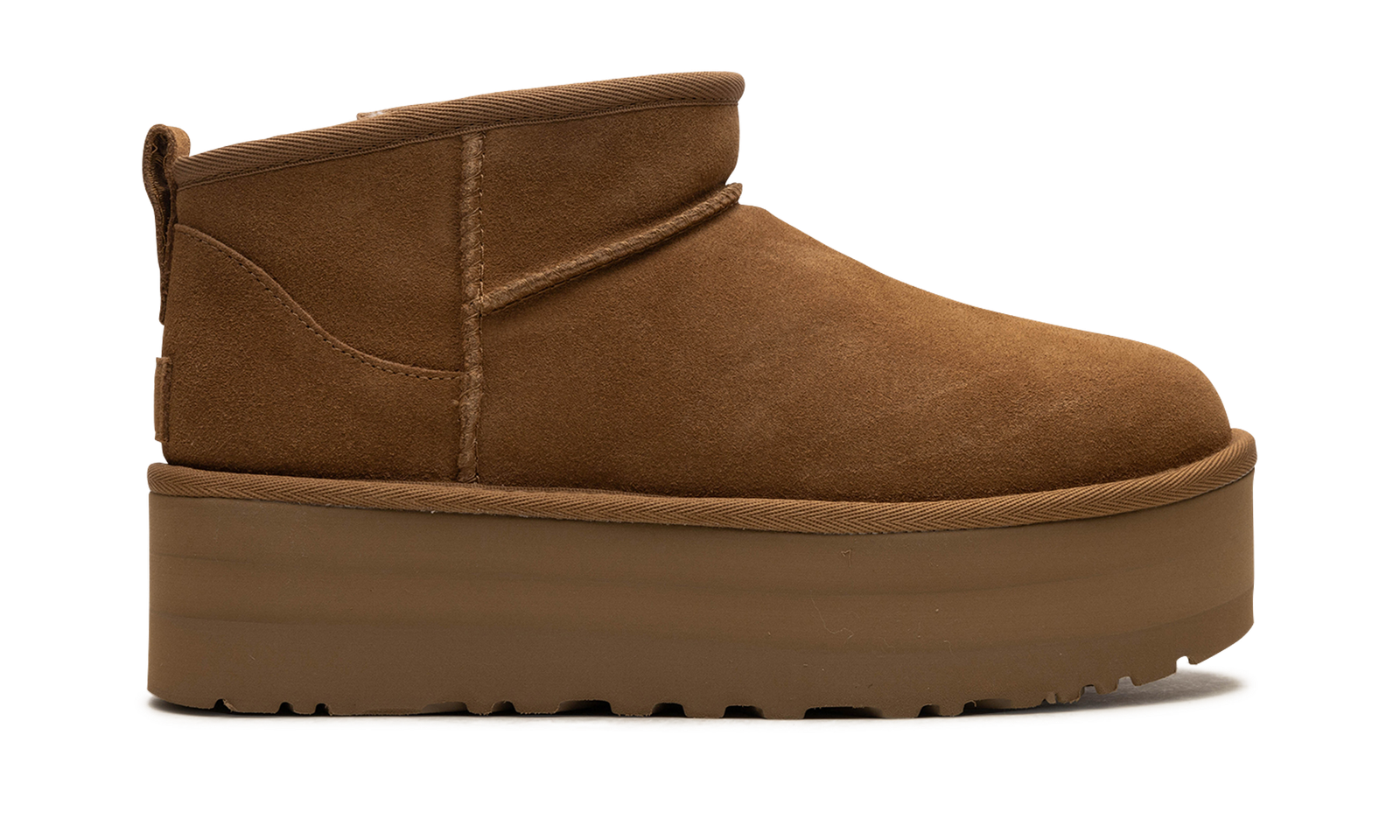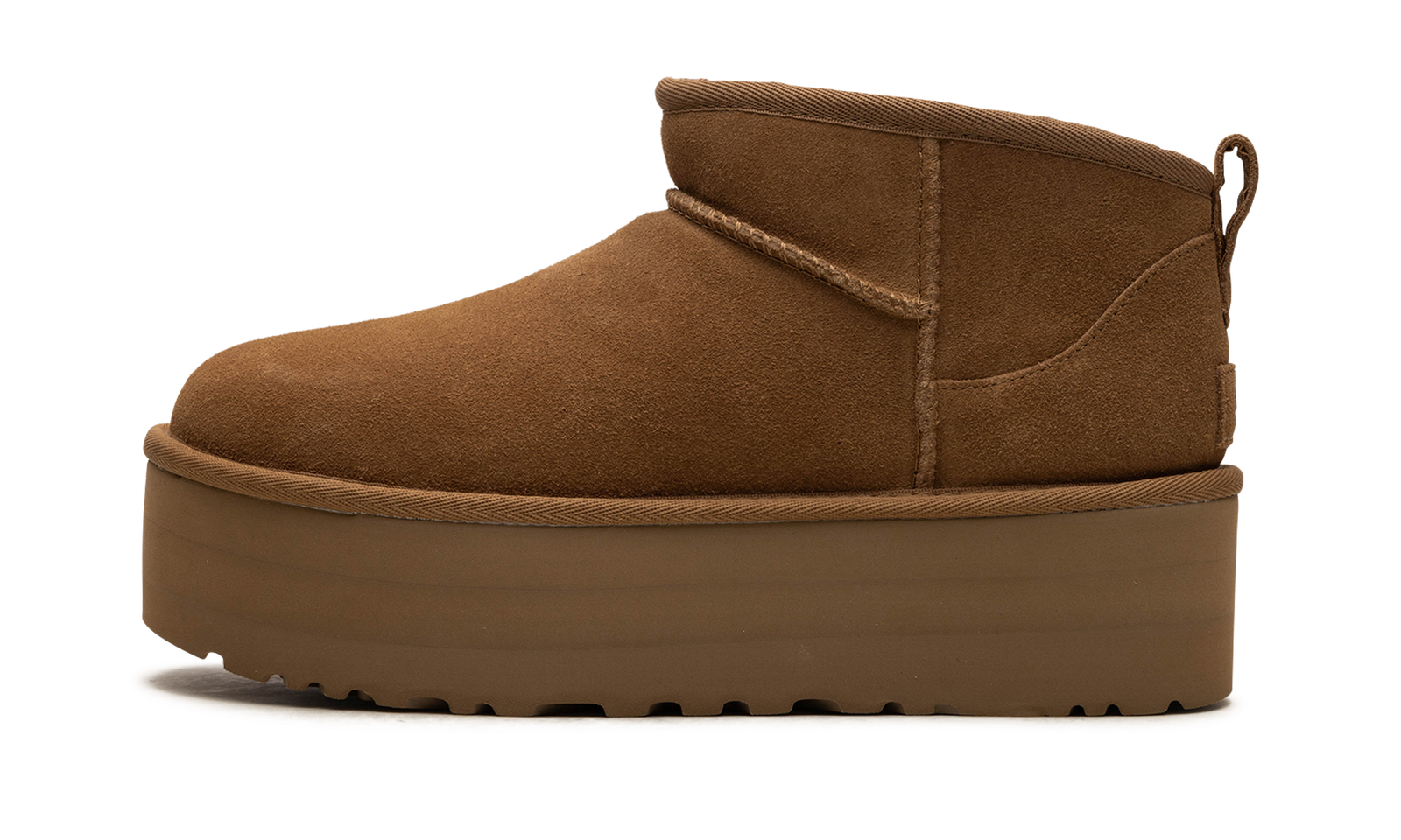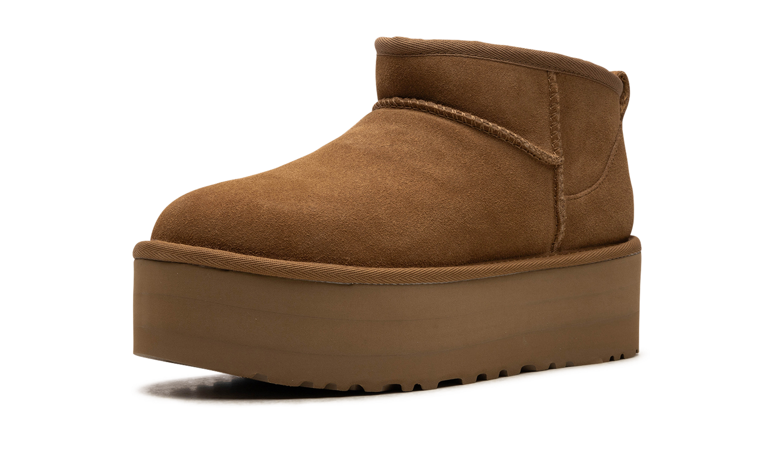 Step into luxurious height with the UGG Classic Ultra Mini Platform Wmns “Chestnut”. This women’s boot features a fashionable platform sole and a rich chestnut suede upper. The plush sheepskin lining ensures supreme warmth and comfort, making it a perfect choice for stylishly running errands or cozy indoor wear.