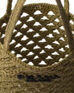 This tote bag with a summery mood reinterprets classic styles in crochet with a modern, sophisticated design. The light, roomy accessory is enhanced by a refined geometric motif inspired by the iconic Prada triangle, while the embroidered lettering logo in a contrasting color completes it with a distinctive touch.