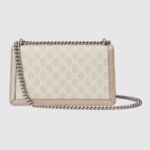 A heritage material from the archive, GG Supreme has been reimagined in Gucci Love Parade in different color combinations and combined with contemporary as well as classic styles. The Dionysus is presented in a beige and white variation of the signature material with a tonal trim. Originally a play on a ’30s design, the canvas speaks to the historical narrative that runs throughout the collection.