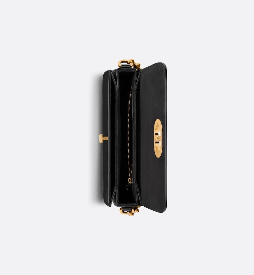 The 30 Montaigne Avenue bag enhances the hallmark line with a timeless and elegant style. Crafted in black box calfskin, the rounded flap with delicate curves is punctuated by an antique gold-finish metal CD clasp inspired by the seal of a Christian Dior perfume bottle. The design is completed by other details, like the 30 Montaigne signature embossed on the back and the signature chain alternating gold-finish metal and tonal enamel links that match the leather. The gusseted bag features a spacious and refined silhouette that can be carried by hand, worn over the shoulder or crossbody.