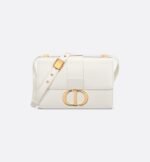 The 30 Montaigne line is inspired by the emblematic address and offers essential pieces that embody the House’s iconic codes. The bag is crafted in latte box calfskin for an elegant and modern look. The flap is embellished with an antique gold-finish metal CD clasp, inspired by the seal of a Christian Dior perfume bottle. Refined details such as an embossed 30 Montaigne signature on the back, define this unique design. Featuring an adjustable leather shoulder strap, the 30 Montaigne bag can be carried by hand, worn over the shoulder or crossbody.