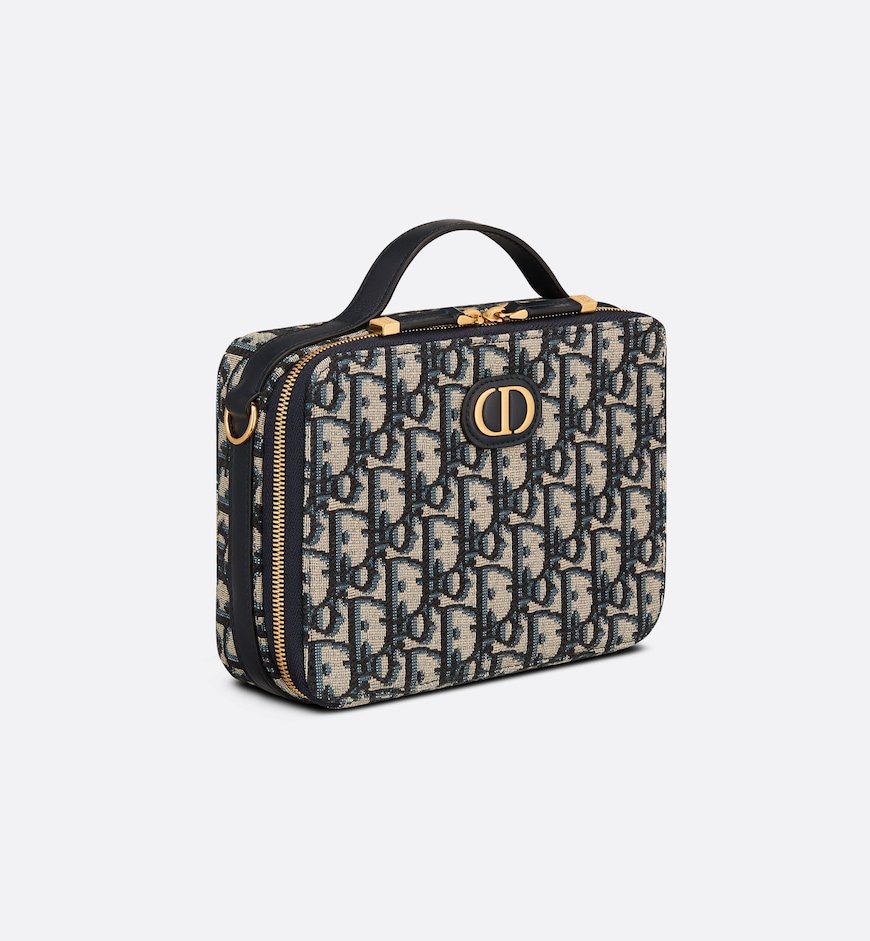Maria Grazia Chiuri’s 30 Montaigne box bag is a modern creation. Crafted in blue multicolor jacquard, it stands out with a Dior Oblique motif and a spacious compartment, including three card slots, to accommodate all the daily essentials. The removable and adjustable leather strap offers comfortable wear either over the shoulder or crossbody, while the handle allows it to be carried by hand.