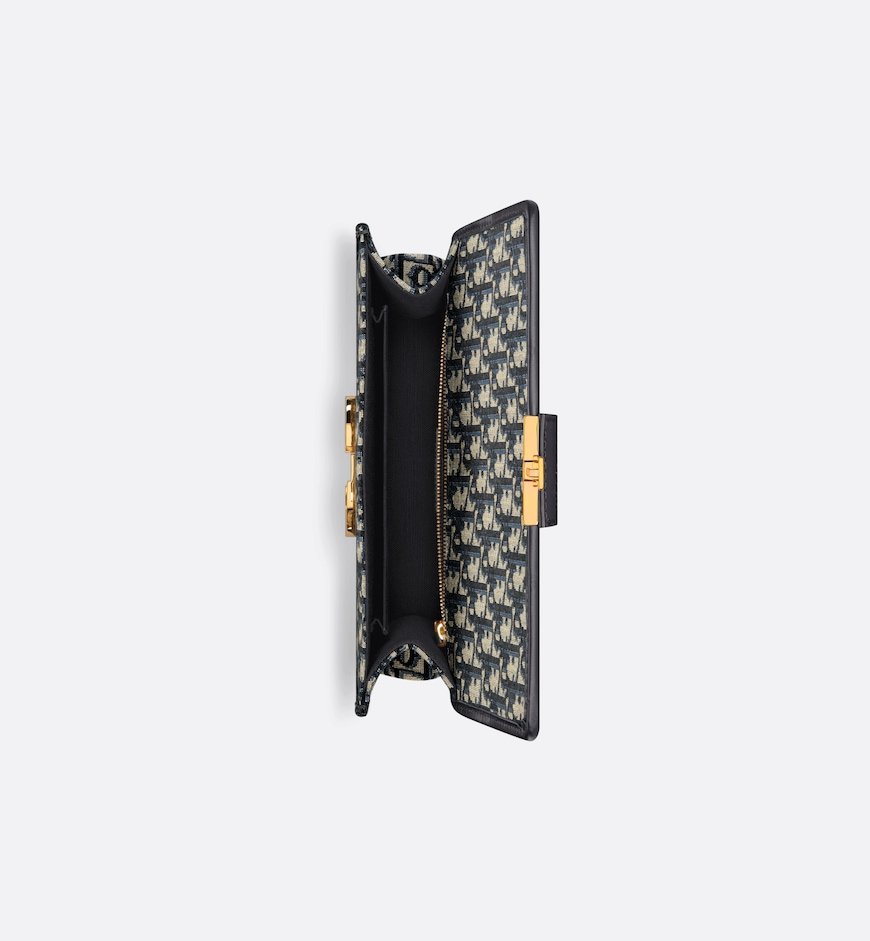 The 30 Montaigne line, inspired by the hallmark address, offers essential pieces that embody the House’s iconic codes. The bag is crafted in blue jacquard and highlights the House’s classic Dior Oblique motif for an elegant and modern design. The flap has an antique gold-finish metal CD clasp, inspired by the seal of a Christian Dior perfume bottle. Other details, like the embossed 30 Montaigne signature at the back, accent the streamlined design. Thanks to the chain strap, the bag can be carried by hand, worn over the shoulder or crossbody.