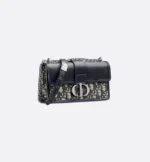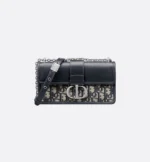 The East-West bag with chain enhances the 30 Montaigne line with a timeless and elegant design crafted in blue Dior Oblique jacquard. The tonal smooth calfskin flap features a silver-finish metal CD clasp, inspired by the seal of a Christian Dior perfume bottle. Other details, like the embossed 30 Montaigne signature on the back, highlight the streamlined style. The removable chain strap has a leather insert that allows the bag to be comfortably carried by hand, worn over the shoulder or crossbody.