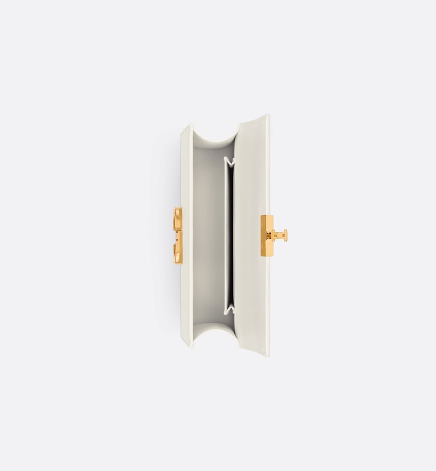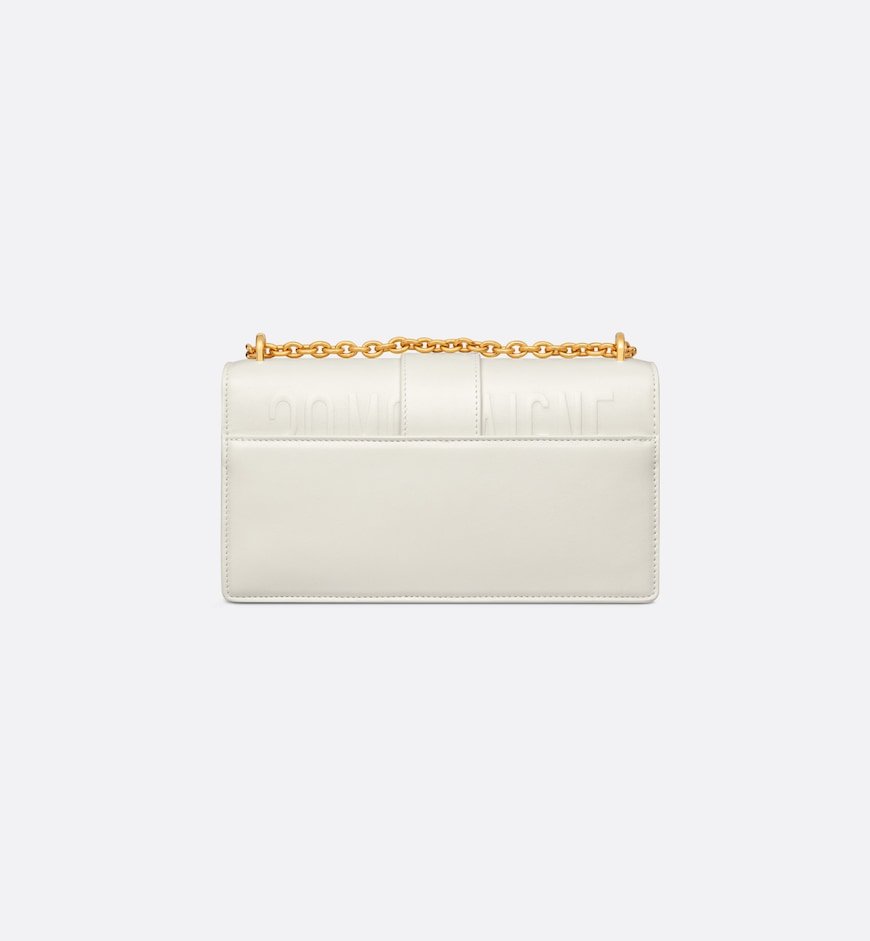 The East-West bag with chain enhances the 30Montaigne line with a timeless and elegant design crafted in latte calfskin. The flap has an antique gold-finish metal CD clasp, inspired by the seal of a ChristianDior perfume bottle. Other details, like the embossed 30Montaigne signature on the back, highlight the streamlined design. The bag features a removable chain strap with a leather insert that allows it to be comfortably carried by hand, worn over the shoulder or crossbody.