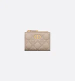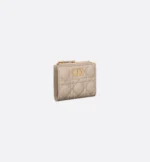 The Dior Caro Dahlia wallet displays the iconic Cannage topstitching in a contemporary variation. Crafted in sand-colored supple calfskin, it has a CD signature on the front. A chic and spacious companion, the wallet can be coordinated with other bags from the same line.